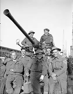 3 AA Bde was now cut off from the bulk of the BEF, which was preparing to evacuate from Dunkirk (Operation Dynamo).[37][38][39] Even after this ended on 3 June, there were still British forces in France north of the Seine, and 79th (HY) HAA Rgt maintained its defences at Le Havre covering the Seine ferries. As AADC, Lt-Col Raikes had a troop of 174 LAA Bty and 307 AA Coy, in addition to his own regiment and 4 LAA Bty: a total of 22 x 3.7-inch, 8 x Bofors, 4 x 2-pounders and 24 S/Ls. There were also some Barrage balloons and French AA guns. Nightly air attacks on the Le Havre harbour area began in earnest on 3/4 June, with the guns in action for long periods.[28][40]