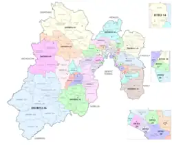 - ^ Population figure indicates total inhabitants, not voters. The INE deems any local or federal electoral district where Indigenous or Afrodescendent inhabitants number 40% or more of the total to be an indigenous district.[1]