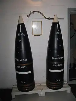 • Adolf shell (long range shell) 600 kg (1,300 lb) German type L/4.2