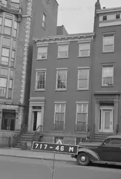 Many of the Walker House's owners and tenants can be traced. After Hugh Walker died in 1829, his wife Mary inherited the lease and house. She remained there until 1833, when she relinquished it to Moore's partner James N. Wells.[14][24][32][33] The next land-rent lessee and house owner was Timothy Coffin, a grain merchant.[34][35] In 1880, he transferred ownership to Thomas Cotterell, a tailor who appears to have been the first to rent rooms to tenants.[36][37][38] In 1885, Cotterell sold to E. Holbrook Cushman, a son of Don Alonzo Cushman, who immediately conveyed the property to other members of the Cushman family.[39] Thereafter, the Walker House remained in the Cushman family until 1945, when it sold to Simeon J. Tropp.[40] A year later, Tropp transferred the property to E. Audrey Distler.[41] In 1965, John S. Doyel bought the house after having rented it for twelve years.[42][43] In 2015, a privately held corporation called 404 W 20 LLC bought the house from the Doyel family estate.[28] A 2019 article in The 'New York Times identifies the person behind the private corporation as British investment banker Ajoy Veer Kapoor.[44]