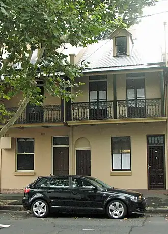 1. ^ a b c d e f g "Terrace House". New South Wales State Heritage Register. Department of Planning & Environment. H00921. Retrieved 13 October 2018. Text is licensed by State of New South Wales (Department of Planning and Environment) under CC BY 4.0 licence.