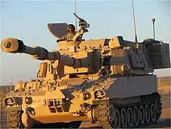 Originally formed as a training unit in 1918 during the waning months of WW I, 4-27 FA served extensively in WW 2 and has taken part in several other conflicts and peacekeeping missions.[3] The unit has achieved two notable battlefield distinctions to date. The first during Operation Desert Storm, when the battalion played a significant role in the 1st Armored Division's defeat of the Iraqi Republican Guard at the Battle of Medina Ridge.[4] The second occurred 12 years later during Operation Iraqi Freedom, when 4-27 FA served in a US Army pilot project to convert artillery units into ad hoc motorized infantry battalions and deploy them in a variety of infantry and military police roles throughout central Baghdad, which earned the battalion the Presidential Unit Citation.[5]