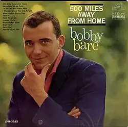 500 Miles Away from Home is the debut studio album by American country artist Bobby Bare. It was released in December 1963 by RCA Victor and contained 12 tracks. RCA Victor had previously released a compilation album of Bare's songs.The album's title track was released as a single in 1963. The single reached the top 10 on the American country, pop, and adult contemporary music charts. The album itself reached the top 10 of the American country albums chart. It received a positive reception from AllMusic in later years.