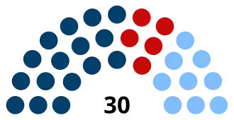 Senators were elected in the 2024 general election in a single constituency.[ 2] The Broad Front will have a majority of seats, which will be complemented by the vice president , who has the right to vote.[ 3]