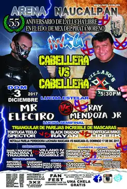The Mexican wrestling promotion International Wrestling Revolution Group (IWRG; Sometimes referred to as Grupo Internacional Revolución in Spanish) has on occasion held a major show in December to commemorate the "birth" of Lucha Libre in their home state. It is unclear exactly when IWRG started to mark the Anniversary, records confirm that they held a show to commemorate the event starting in 2010 commemorating the 48th Anniversary of Lucha Libre in Estadio de Mexico, possibly prior to that. The 2017 show was for the 55th anniversary and was held on December 3, 2013, in Arena Naucalpan, Naucalpan, State of Mexico where IWRG holds almost all of their major lucha libre shows.[1]