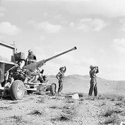 57th LAA Regiment reassembled at Blackdown, where it re-equipped with Bofors guns.[100] In January 1941, the regiment joined the War Office Reserve, and left the UK for the Middle East in March.[101][102]