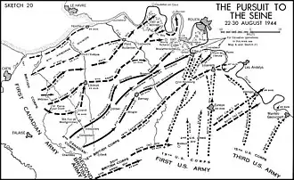 ![]() Map of the First Canadian Army's advance, August 1944. | |||||||||