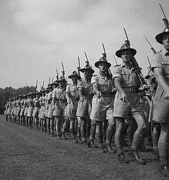 There had been some initial reluctance by the New Zealand government to allow the departure of the brigade. There were fears that the Japanese Empire had hostile intentions towards British Commonwealth possessions in the Pacific and the brigade represented trained and equipped manpower that could be used in home defence. In the end, it was decided to retain a contingent of reinforcements intended for the first and second echelons for defence purposes in the Pacific.[4] The brigade itself left for the Middle East in August 1940, and arrived in Egypt by the end of September.[5] The 6th Brigade was located at the division's Maadi Camp where it would undergo training while the other major component of the division already in Egypt, the 4th Infantry Brigade, was on garrison duty in the Baggush Box.[6]