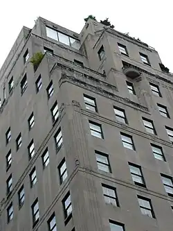 The building was constructed in 1929 by James T. Lee, the grandfather of First Lady Jacqueline Kennedy Onassis – who lived there as a child as Jacqueline Bouvier – and was designed by Rosario Candela and Arthur Loomis Harmon; Harmon became a partner of the newly named Shreve, Lamb and Harmon during the year of construction. The building was officially opened in October 1930, a year after the Great Depression began, and the poor timing was devastating. Even though the New York elite had moved in, the building had failed financially by 1933. It remained in the red for 50 years.[3] It was not until the 1980s that the building's apartments sold for incredibly high prices.[1][4]