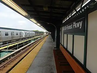 The 85th Street–Forest Parkway station is a skip-stop station on the BMT Jamaica Line of the New York City Subway, located on Jamaica Avenue in Woodhaven, Queens.[6] The J train serves this station at all times. The Z train skips this station when it operates.[7]