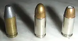 9mm Parabellum ammunition is offered in a wide array of types and variations, designed to meet the specific needs and preferences of its users. This diversity in 9mm ammunition encompasses multiple standard categories, such as full metal jacket (FMJ), jacketed and unjacketed hollow point (JHP), frangible ammunition, soft point, tracer, and other specialized variants tailored for competitive shooting or law enforcement applications.[44] VBR-B produces specialized bullets for this cartridge, a two-part controlled fragmenting projectile and an armor-piercing bullet that features a brass sabot and a hardened steel penetrator. These are designed to increase the content of the permanent wound cavity and double the chance of hitting a vital organ.[45]