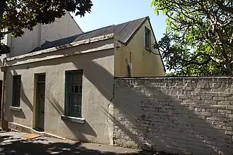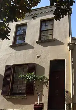 Located within the Millers Point historic district.[5][1] A flush fronted house built on the street alignment and has a dentilled brick parapet like No. 82. Unfortunately the front door has been replaced.[3][1]