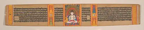 Painted covers and single folio from the Aṣṭasāhasrikā Prajñāpāramitā manuscript from Nepal, dated 1511. Royal Library, Denmark