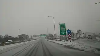 A27 exit to the A2 (towards the east) at the Kozani Ι/C (south end of A27), in winter 2018-19