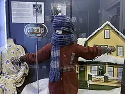In December 2004, Brian Jones, a San Diego entrepreneur and fan of the film since childhood, bought the house on eBay for $150,000.[8] Jones used revenue from his business, the Red Rider Leg Lamp Company, which manufactures replicas of the "major award" Ralphie's father won in the film, for the down payment.[9] The previous owners had reconfigured the house, installing modern windows and covering the original wood siding with blue vinyl. Watching the movie frame by frame, Jones drew detailed plans of the interiors, which had originally been filmed on a Toronto sound stage, and spent $240,000 to gut the structure, reconfigure it to a single-family dwelling, transform it into a near-replica of the movie set, and restore the exterior to its appearance in the film.[10]