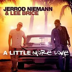 "A Little More Love" is a song recorded as a duet by American country music artists Jerrod Niemann and Lee Brice. It was released in April 2016 as the first single from Niemann's fourth studio album, This Ride. The song was written by Shane McAnally, Ross Copperman, Natalie Hemby and Kristi Neumann. The song was Niemann's first single released through Curb Records.