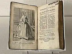 A Narrative of the Life of Mrs. Charlotte Charke is a 1755 autobiography by English actress Charlotte Charke. Her autobiography sheds light on the experiences and difficulties she faced as a woman in the public eye, providing insight into the gender dynamics of 18th-century England and her own economic struggles. Originally published as a serial, Charke claims that the narrative is an attempt to reconcile with her father, who at the time of writing had disowned her.[1] The book sold well and was republished several times.
