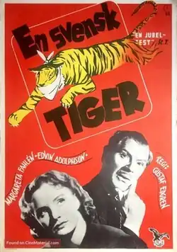 A Swedish Tiger (Swedish: En svensk tiger) is a 1948 Swedish war drama film directed by Gustaf Edgren and starring Edvin Adolphson, Erik Berglund and Margareta Fahlén.[1] The film's sets were designed by the art director Nils Svenwall. Its title refers to the wartime propaganda campaign A Swedish Tiger encouraging inhabitants to avoid careless talk.