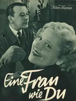 A Woman Like You (German: Eine Frau wie Du) is a 1933 German comedy film directed by Carl Boese and starring Liane Haid, Georg Alexander, and S. Z. Sakall.[1]It was shot at the Bavaria Studios in Munich and on location in Garmisch-Partenkirchen. The film's sets were designed by the art director Ludwig Reiber.