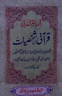 Aalamul Quran (Urdu: اعلام القرآن) is a book written by Indian scholar Abdul Majid Daryabadi on Science of Geography in the Quran. Published in 1959 by Sidq-i-Jadid Book Agency, Lucknow, comprising 208 pages, the book is an alphabetically arranged comprehensive dictionary of Quranic Personalities, whether human, angelic or diabolic mentioned in the Quran explicitly or implicitly.[1] Thus, it is a book on the human geography of the Quran: both individual and tribal geography is furnished. The book introduces to 158 personalities. It is a unique work on this genre. Along with Tafseer-e-Majidi written both in Urdu & English, Daryabadi has authored another book entitled Jugrafiyah Qurani which elaborates physical geography employed in the Quran.[2]