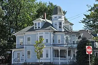 The Aaron Martin House is a historic house in Waltham, Massachusetts. The 2+12-story wood-frame house was built in the 1890s by Waltham Watch Company employee and real estate speculator Aaron Martin. It is a particularly well-preserved local example of Queen Anne styling. It has a variety of projections, gables, and porches, in a manner typical of the style, as well as a 3+12-story tower with a bell-shaped roof. Its porches are elaborately decorated with gingerbread woodwork.[2]