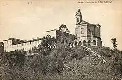 The Abbey of Saint Pons (French: Abbaye Saint-Pons de Nice) is one of the oldest monasteries on the French Riviera, along with Lérins Abbey. It is located in the municipality of Nice in the Alpes-Maritimes. The original abbey was constructed between 774 and 800 and entrusted to the Benedictines. However, in 890, it was destroyed by the Saracens during a failed attack on Nice. The church was rebuilt in 1724 in Baroque style.