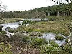 The SSSI citation notes that the site is an acidic wetland of particular importance because of two mature Schwingmoors, namely South Moss and Shemmy Moss. A Schwingmoor or quaking bog occurs when plants such as Sphagnum mosses and cotton grass Eriophorum sp. colonise the surface of a waterbody and form a floating mat of vegetation.[3]