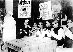 From an early age, he developed a sense of patriotism. At the age of thirteen, he assembled helpless milk sellers against the local zamindars and mahajans and demanded that they pay them a fair price for milk. By the age of twenty-one, he was leading marchers in a non-violent protest for independence at the Salanga bazaar in Raiganj, when the crowd was fired upon, killing hundreds of people.[4] The events of 27 January 1922 are now referred to as the Salanga massacre in Bangladesh, and memorialised by "Salanga Day" annually.[5]
