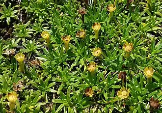 Abrotanella nivigena (common name - Snow wort)[1] is a member of the daisy family and ranges from southeast New South Wales to eastern Victoria, Australia,[2] growing in the Kosciuszko region.[1] It is a cushion plant growing from 3 to 5 cm tall.[1]