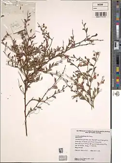 - ^ a b Maslin, Bruce R. (1999). "Acacia miscellany 16. The taxonomy of fifty-five species of Acacia, primarily Western Australian, in section Phyllodineae (Leguminosae: Mimosoideae)". Nuytsia. 12 (3): 317–318. Retrieved 7 April 2024.