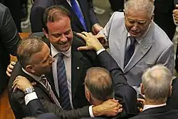 The Temer administration was successful in blocking both accusations in the Brazilian Chamber of Deputies, but under the accusation of political favoritism and buying the votes of deputies through parliamentary amendments and the distribution of positions, projects, measures, and other benefits.[2][3][4] In addition, the accusations resulted in the loss of support from the government's base in the Chamber of Deputies throughout the votes.[5][6]