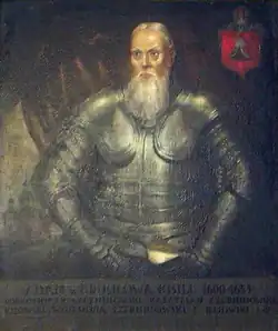 Adam Kisiel[1][2][3] (Polish: Adam Kisiel; Ukrainian: Адам Кисіль, romanizedAdam Kysil;[4][5] 1580[6] or 1600[7] – 3 May 1653)[8] was a Polish nobleman of Ruthenian origin.[9][10] He served as the voivode of Kiev from 1649 to 1653.[11] He was also the castellan or voivode of Czernihów from 1639 to 1646. Kisiel has become better known for his mediation during the Khmelnytsky Uprising.