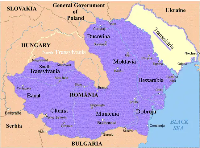 Administrative map of Romania and Transnistria Governorate in May 1942
