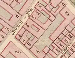 Almind's property in Admiralgade was home to 22 residents in three households at the 1801 census. Almind and his wife resided in one of the apartments with four of their children (aged eight to 25), three lodgers, a caretaker and two maids.[6] Peter Aagaard, a pensioner, resided in the building with his wife Birgitte Sørensen and two maids.[7] Jacob Dreier, a school teacher, resided in the building with his wife Friderike Ebsen, their daughter Margrete Dreier, two lodgers and one maid.[8]