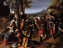 The Adoration of the Magi is a painting by the Italian late Renaissance painter Correggio, executed around 1515–1518. It is housed in the Pinacoteca di Brera of Milan, Italy.