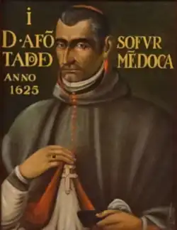 D. Afonso Furtado de Mendonça (Montemor-o-Novo, 1561 - Lisbon, 2 June 1630) was a Portuguese prelate, who was for five years Bishop of Guarda, two years Bishop of Coimbra, seven years Archbishop of Braga, and four years of Lisbon, in whose cathedral, in the main chapel, he was buried.
