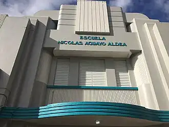 The Aguayo Aldea Vocational High School (Spanish: Escuela Superior Vocacional Aguayo Aldea), popularly known as La Vocacional,[2] is a historic school in Caguas, Puerto Rico, named after Nicolás Aguayo Aldea, a Puerto Rican writer and politician from the 19th century.[3] The Art Deco building dates to 1939 and was designed by architects Lizardi & Díaz Diez.