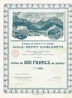 Share of the CdF Aigle-Sépey-Diablerets, issued 24. December 1911 [2]