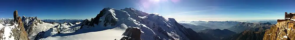 A panoramic view of Mont Blanc from Aiguille du Midi