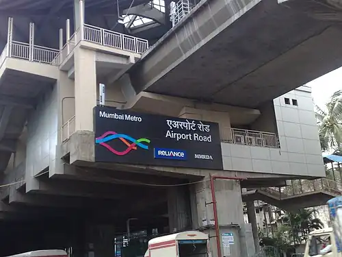 Airport Road is an elevated metro station on the East-West Corridor of the Blue Line 1 of Mumbai Metro in Andheri, Mumbai. It was opened to the public on 8 June 2014.[2]