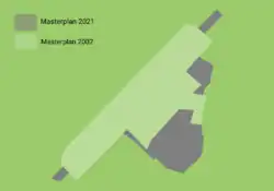 The airport authority also plans to build a new passenger terminal (completion 2023), with an area measuring 120,000 square metres (1,300,000 sq ft).[46] Additional cargo terminal, 133,895-square-metre (1,441,230 sq ft) cargo facilities and 68,000-square-metre (730,000 sq ft) aircraft maintenance facilities will be built as well.[43] The project began in 2020, cost US$22.7 million and was expected to be completed in 2023.[47][48][49]