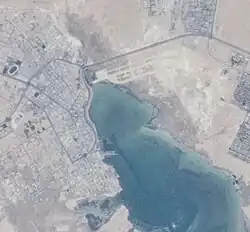 Al Khor (Arabic: الخور, romanizedAl Khawr) is a coastal city in northeast Qatar, located 50 kilometres (31 mi) north of the capital Doha. Considered one of Qatar's largest cities, it is the capital city of the municipality of Al Khor and Al Thakhira. Dating back to the 18th century, it is one of Qatar's oldest settlements. The name of the city, meaning creek in Arabic, emerged because the original settlement was built on a creek. Until the mid-1900s, it was known as Khor Al Shaqiq.[3]
