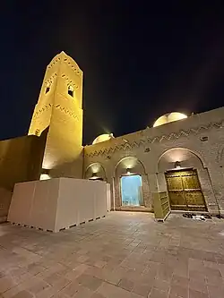 The mosque was built in 1943 during the reign of King Abdulaziz ibn Saud and was situated on the site of al-Madi, a large seven column basin used by tribal nomads to water their livestock.[2] In 1998, the mosque was demolished during the King Abdulaziz Historical Center project and later rebuilt in 2004 using compressed earth blocks.[3][4][5]