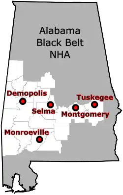 The Alabama Black Belt National Heritage Area was designated on January 5, 2023, as part of the National Heritage Area Act of 2022, which created the National Heritage Area System under the National Park Service.[1]