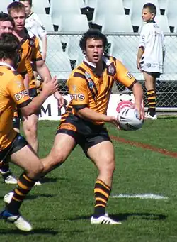 ![]() Schirnack playing for the Balmain Tigers in 2008 | ||||||||||||||||||||||
