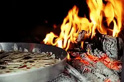 It is often served hot, fresh and with pickled vegetables, honey, yogurt or fruit jam. Nowadays, flia mainly features in large social gatherings, weddings, births and other ceremonies and events. Fli is a dish mainly cooked in Kosovo. The dishes may differ depending on the region of Albania.[41]Fli is made carefully and in a different way with a specific type of charcoal lid. Fli, or otherwise referred to as Flija, is a basic but well-known type of pie, that is cooked with a specific type of charcoal lid and must be made at a campfire, which is how the Fli is cooked.[42] Bakllasarëm is a layered pie, otherwise known as pite, without anything inside, which is covered with yogurt and garlic and then heated again. It is particularly eaten for lunch. Another popular dish is kungullur, which is made of filo pastry layers filled with mashed pumpkin, butter, salt or sugar.