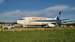 As part of the museum, the Alberta Aviation Museum's Boeing 737-200, ident C-GIPW, in Pacific Western Airlines (PWA) livery (Fleet #745) was restored to operational capability and, on 29 November 2013, was flown to Villeneuve on a Schedule A Special Flight Permit issued by Transport Canada.[3][4][5][6][7] The Boeing 737-200 remains at Villeneuve and is a ground attraction during the Alberta International Airshow.