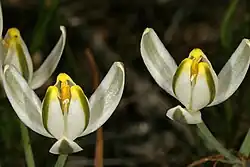 It has white flowers with thick darker central lines. Like Albuca setosa, its flowers are held erect (not drooping). It flowers in late Spring.[1][2]