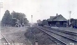 The Great Western Railway built the first railway station built here in 1855, a wooden structure consisting of ticket office, waiting room and freight room. It was originally named Waterdown Station, due to its location on Waterdown Road. The Great Western was purchased in 1882 by the Grand Trunk Railway, which replaced the station in the 1890s. In 1912, the Canadian Pacific Railway constructed a rail line from Guelph Junction to Hamilton and built a station in the neighbouring town of Waterdown with the GTR station subsequently renamed after the community of Aldershot, where it is situated. In 1920, the GTR merged into the Canadian National Railway. By the 1950s, passenger travel declined. The station closed in 1978, and was demolished in the 1980s. GO Transit built the current station in 1992.[1][2]
