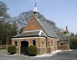 The Protestant portion of the cemetery was consecrated by Samuel Wilberforce, the then Bishop of Winchester, on 1 November 1870. An extension was opened in 1879 which added land to the south-east to extend the grounds as far as Ordnance Road, and to the south-west onto Peaked Hill. The age of many of the mature trees suggests that the whole of the Cemetery grounds were planted at this time. The present brick-built Memorial Chapel replaced a wooden one that had burned down in 1879. The chapel's architect is not known but it was probably a member of the Royal Engineers who were responsible for the cemetery at the time it was built. The chapel is of relatively plain design, mostly of red brick but with black and white brick dressing, and a slate roof. The entrance porch is believed to be a later addition and has attractive wrought-iron gates.[3]